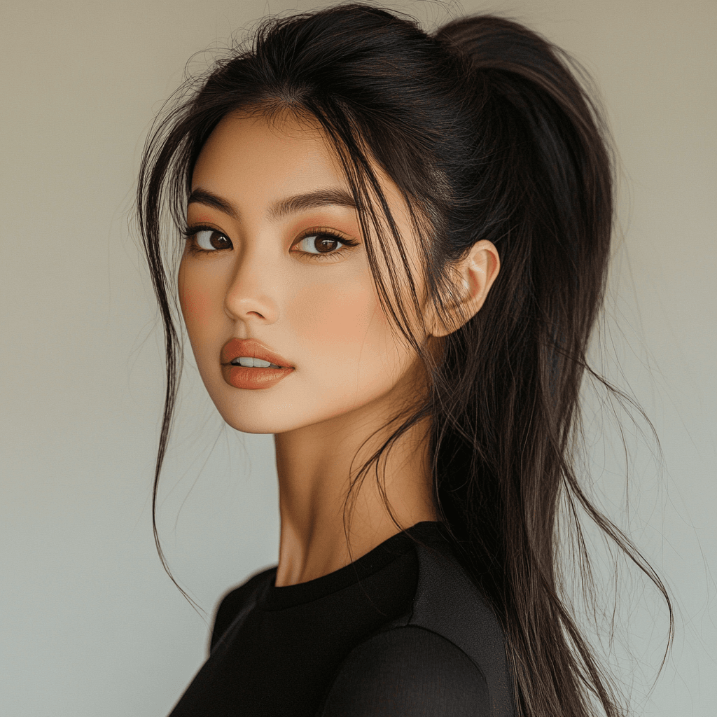 Description: A high ponytail with volume adds height and emphasizes the face, especially for oval-shaped faces. It’s a sleek and chic look that’s perfect for formal events, office settings, or even a day out.