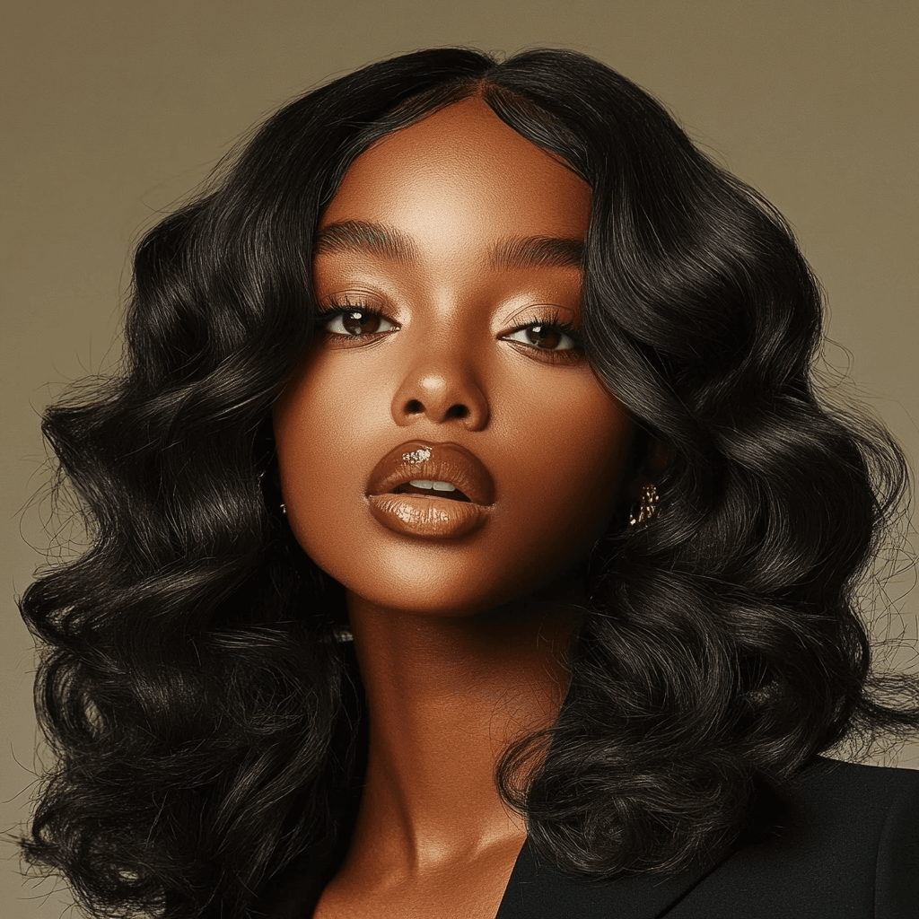 Description: A more structured and defined wave with a clean center part, creating an elegant, vintage-inspired look. The tight waves add volume and texture while framing the face symmetrically.