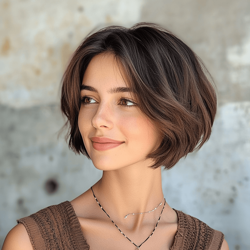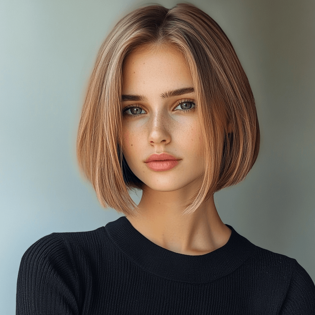 Description: The blunt bob features straight, even edges with no layering, providing a bold and sleek look. This style emphasizes sharpness and elegance, making it a great option for oval faces as it highlights facial features such as cheekbones and jawlines.