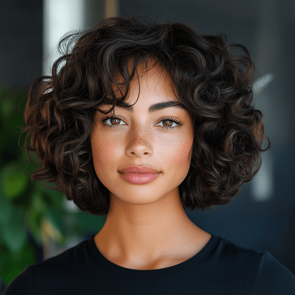Description: A curly bob is a playful and voluminous hairstyle that brings attention to natural curls. This cut can either be chin-length or slightly longer, adding a dynamic, textured look to oval faces.