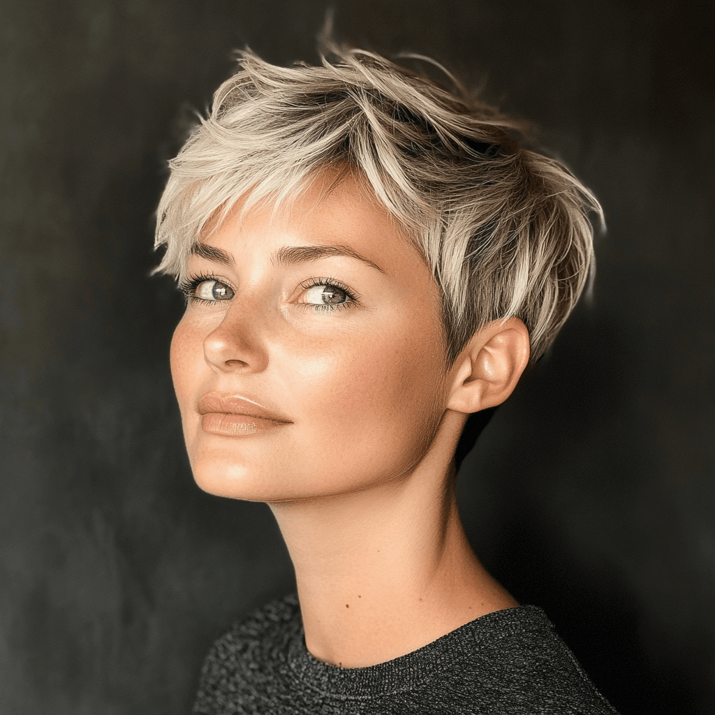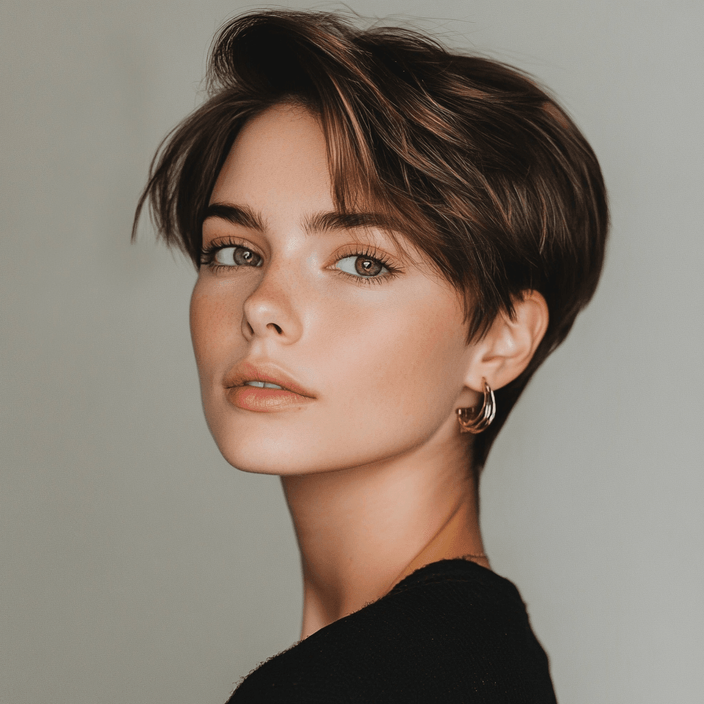 Description: The Side-Swept Pixie is a chic, short hairstyle where the bangs are swept to one side, creating a sense of movement and asymmetry.